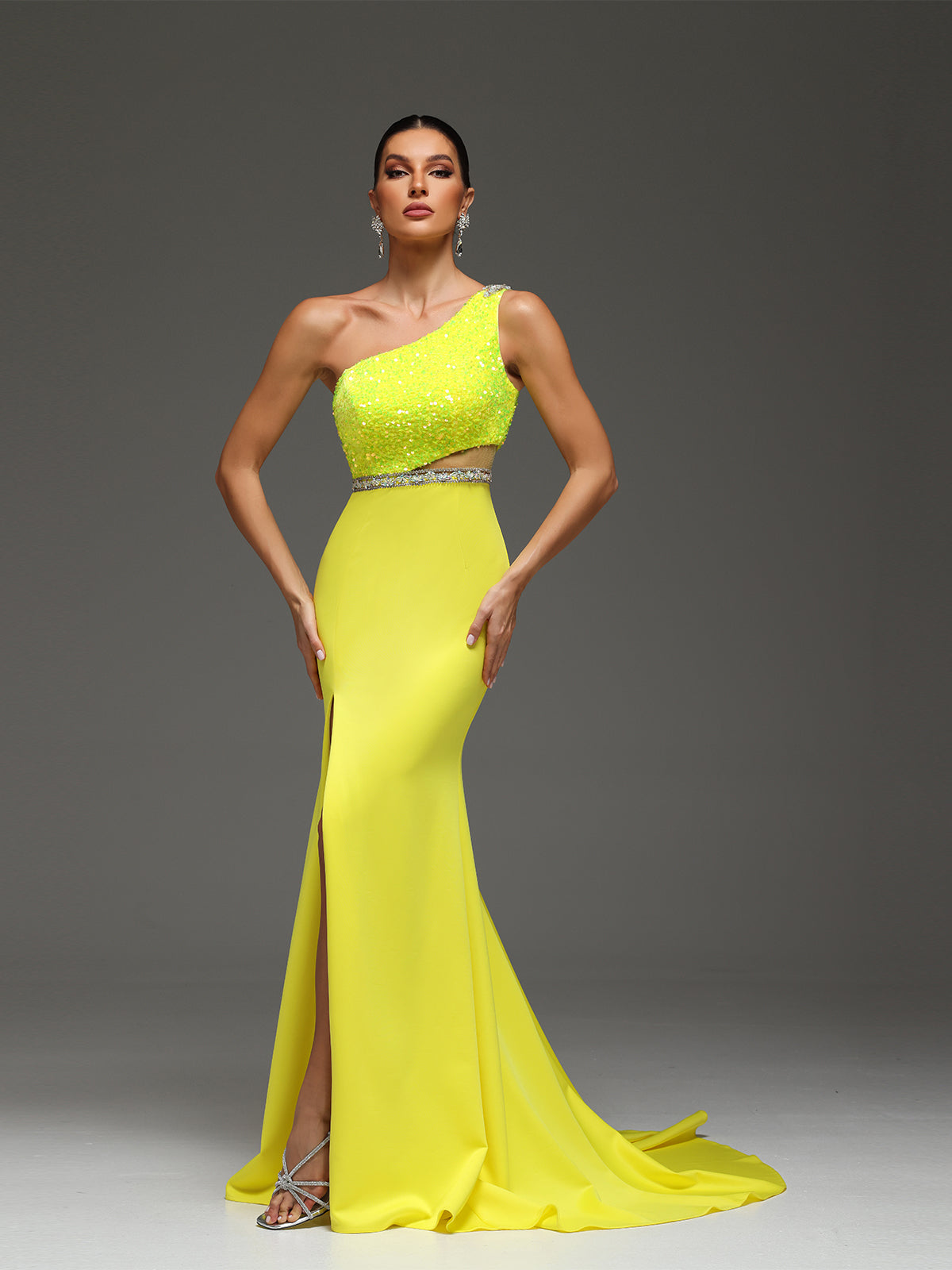 Steal every glance in the Marilyn Beaded Sequin High Slit Cut-Out Mesh Maxi Dress. A stunning blend of mesh and sequins sculpts the body while delicate cut-outs highlight your curves. The daring slit brings high-drama appeal, balanced with elegant beaded detailing. Radiate confidence and allure all night long.